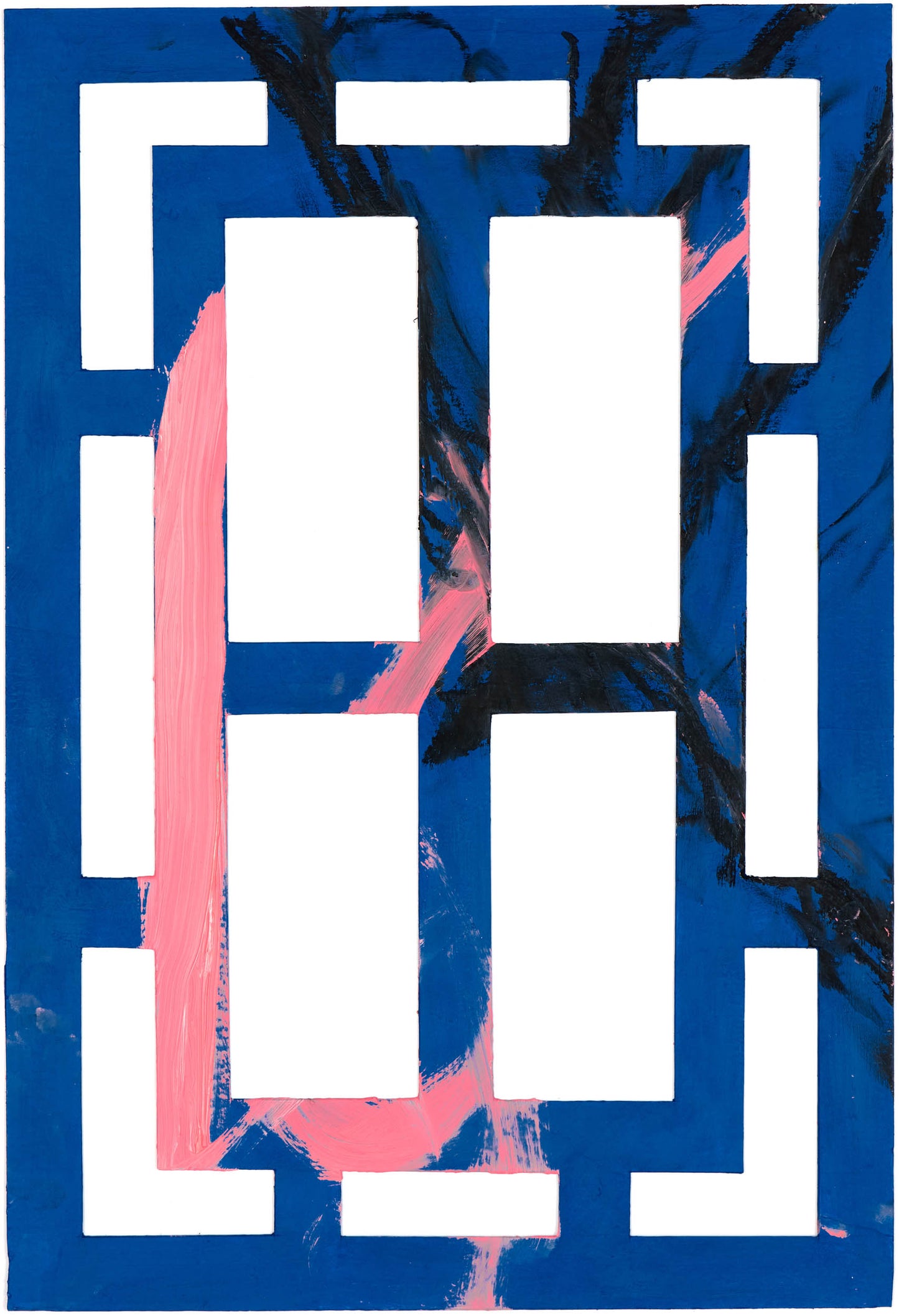 Oil, acrylic, ink, graphite on card cut-out